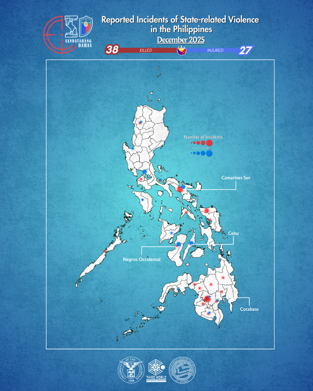 In June 2025, the Sandatahang Dahas monitor recorded 52 cases of state-related violence: 38 killings and 14 injuries. The killings of the 38 were attributed to the police and the military.